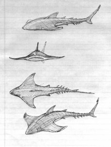 This rough sketch shows some of the creatures players will meet when they dive underwater with Big Blue.