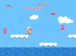 We just cannot mention Wonder Boy without talking about the skateboard! If players already poses the stone hatchet weapon and bust open another of those giant bird eggs, it is very likely the skateboard power up will appear. Tom-Tom now dons an adorable little helmet with matching knee and elbow pads (safety first!) The skateboard will allow players to move faster and jump higher. It is a bit of a double edged sword though, as despite having improved agility it’s now a lot trickier to control. Master the skateboard and you will soon be whizzing across the island like nobodies business.