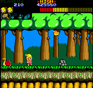 The home console port of Wonder Boy is excellent. Everything from the arcade original is captured perfectly, from the high speed gameplay to the simplistic yet vibrant visuals.