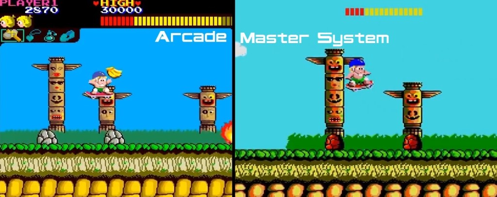 Later in 1986, Escape had the desire to port the arcade title onto several other home consoles. This was however, not to be. Much to the development teams dismay, SEGA owned the rights to main character designs, the bosses and the games title. Dissatisfied with the situation, Escape conjured up a plan. They teamed up with Hudson Soft, a Japanese development studio best known for their Bloody Roar, Bonk and Bomberman franchises. Keeping all of the gameplay intact, Hudson Soft created a new title altering only the playable characters, bosses and the title of Wonder Boy.