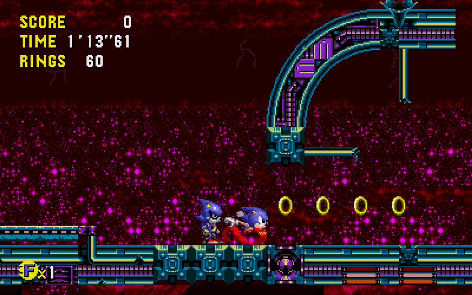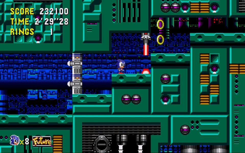 Sonic CD is my least favorite of the Genesis-era 2D Sonic games. I always preferred the speedier pace and flow of Sonic the Hedgehog 2, 3 and Knuckles, as well as the relatively muted, warmer color palettes of those games. The denser and chaotic design of Sonic CD‘s zones demands more precise platforming prowess that at times results in a ponderously paced game, at least when compared to the canon entries of the series.