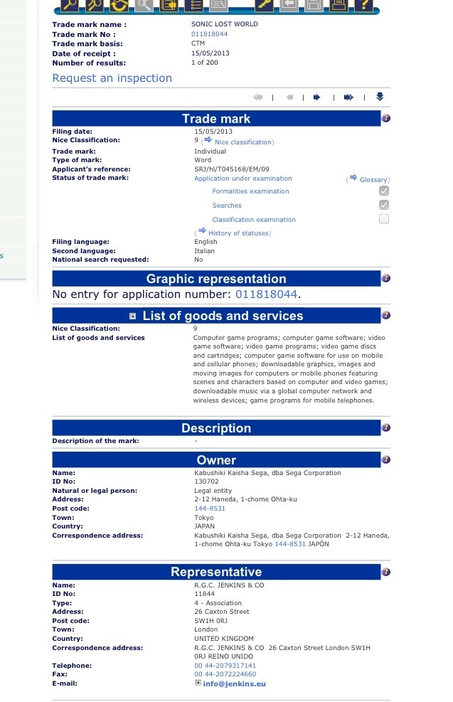 Yesterday SEGA Japan filed a trademark for (what appears to be) a new Sonic game, Sonic Lost World, with the London-based patent office, Jenkins & Co.