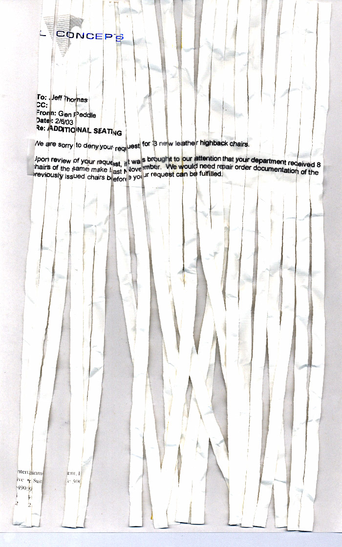 A couple days later, a big box arrived at his door from Beta-13. Inside was full of shredded paper, which appeared to be interoffice e-mails at Visual Concepts. “Inside the lid there’s a note taped that just says ‘Here’s your half, buddy. Grab some scotch tape.’ This is gonna be a loooong night.”
