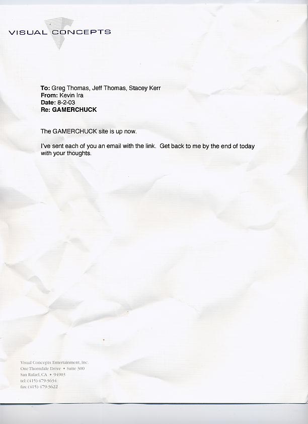 “Found a memo that says, ‘RE: BETA TEST, 3/22/03!!!’ Didn’t really give away anything specific, but said marketing would have to put the project ‘on hold’ until they ‘assess the situation,'” he wrote. “Hmm, what ‘situation’ could that be, Sega? The ‘situation’ where I went nuts and tackled the guy next to me!?!”