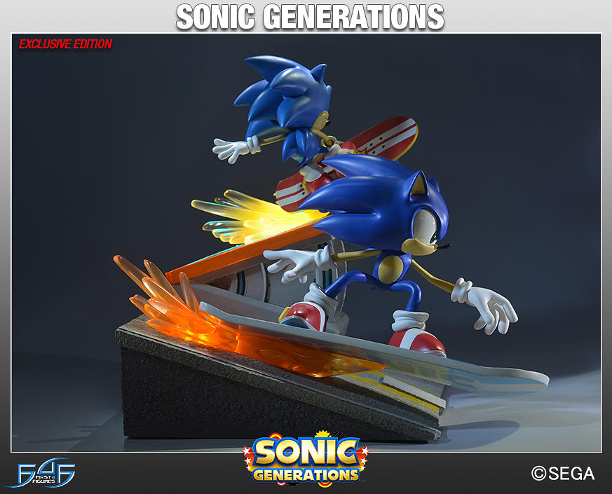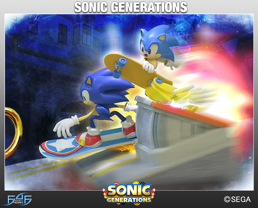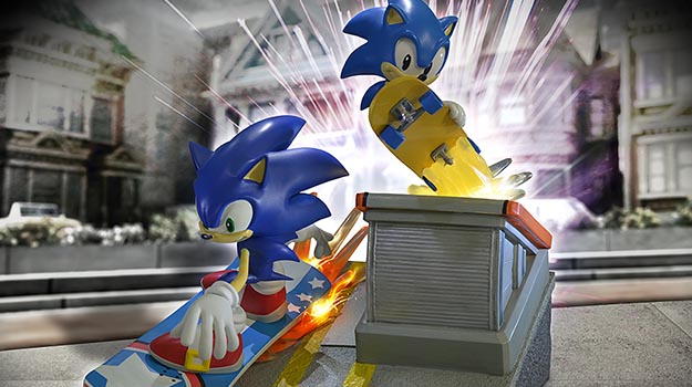 As promised, First 4 Figures removed the shroud of mystery surrounding its next Sonic-themed statue range today with the unveiling of the Sonic Diorama Collection. Limited to 1,000 pieces, the first piece in this collection is the City Escape Diorama, measuring at 12x10x12 inches, which can already be pre-ordered for $299.99 and will ship in the second quarter of 2014. This City Escape scene was originally seen in Sonic Adventure 2 and later featured in Sonic Generations. A 450-run limited edition will also be offered that includes LEDs in the base for $329.99. You can pre-order the regular edition here and the exclusive edition here.