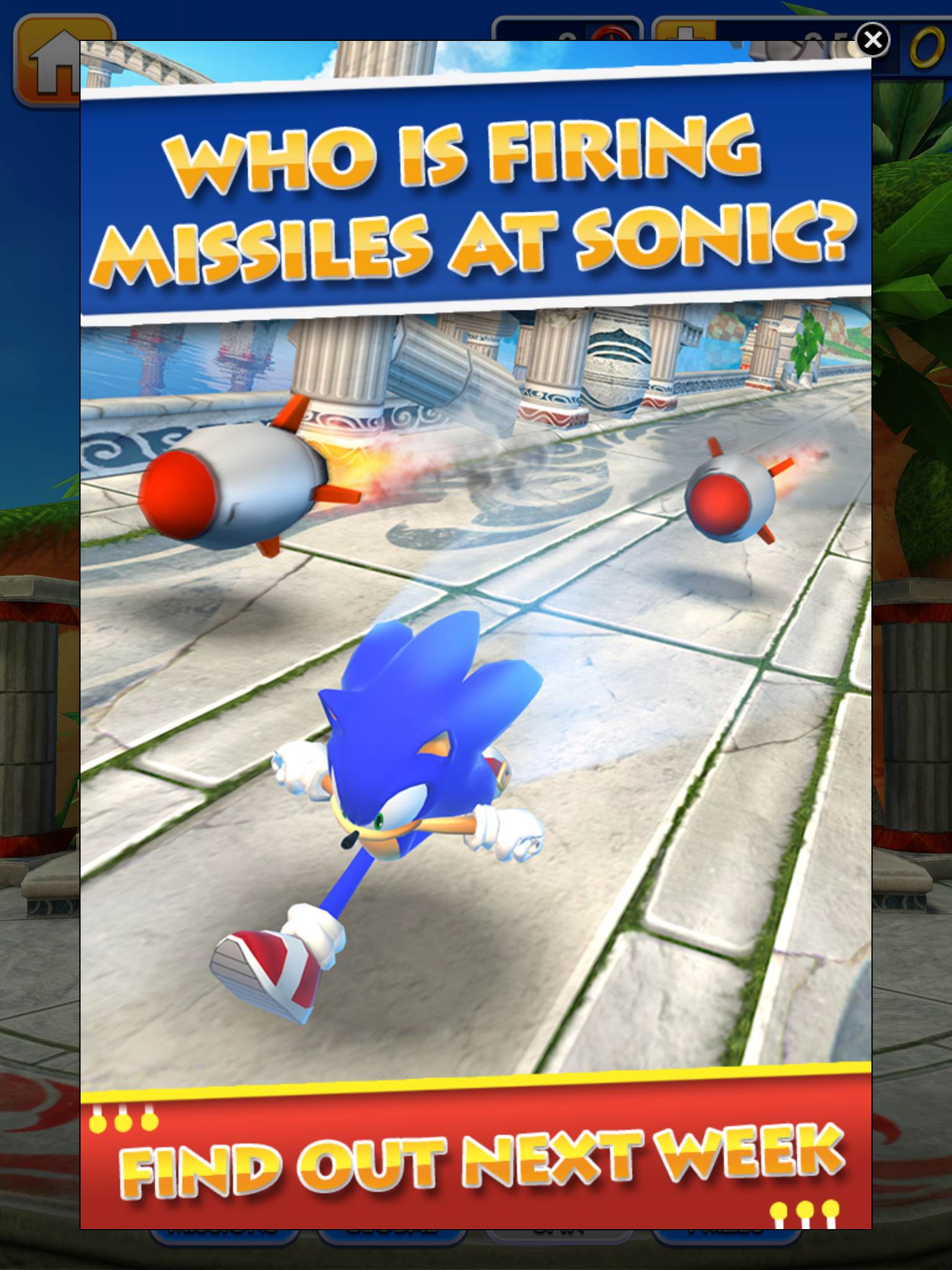 A recent Sonic Dash push notification suggests Dr. Robotnik will be making an appearance in the game next week. Accompanying the image was the question, “Who is firing missiles at Sonic?” Of course, we know who just loves to do that, right?
