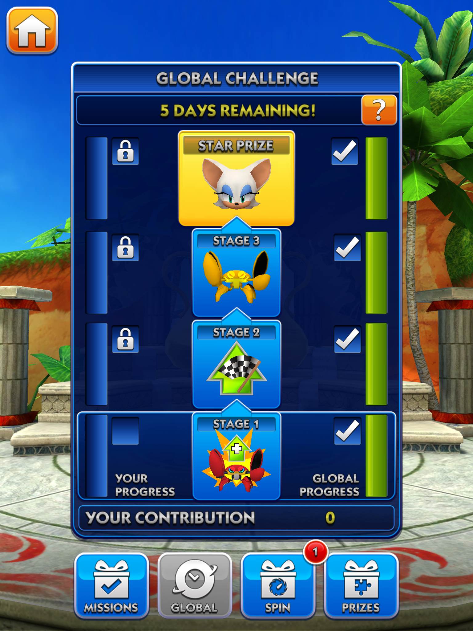 We hope you’ve been participating in Sonic Dash’s latest global to unlock Rouge the Bat because the global progress bar just filled up yesterday.