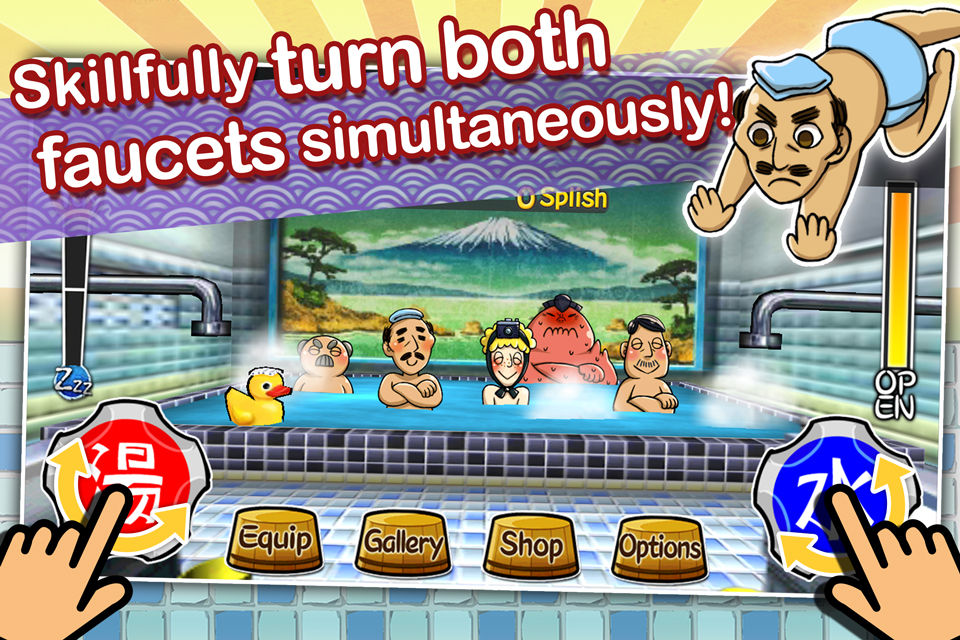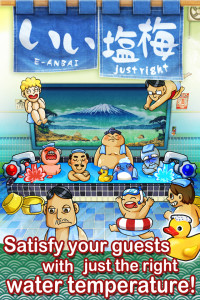 The game is called E-ANBAI, which translates to Just Right, and released today for free on iOS and Android devices. In the game, you run a Japanese bathhouse and must adjust the water, swiping on and off the hot and cold water faucets, to a comfortable temperature for your guests.