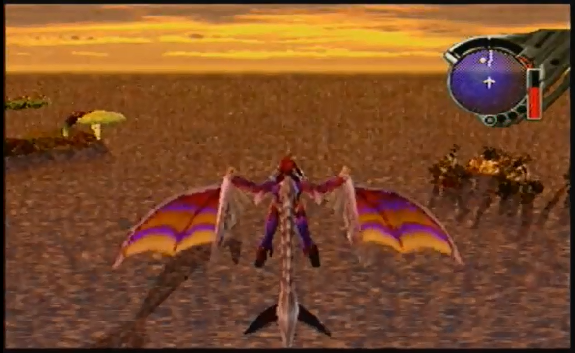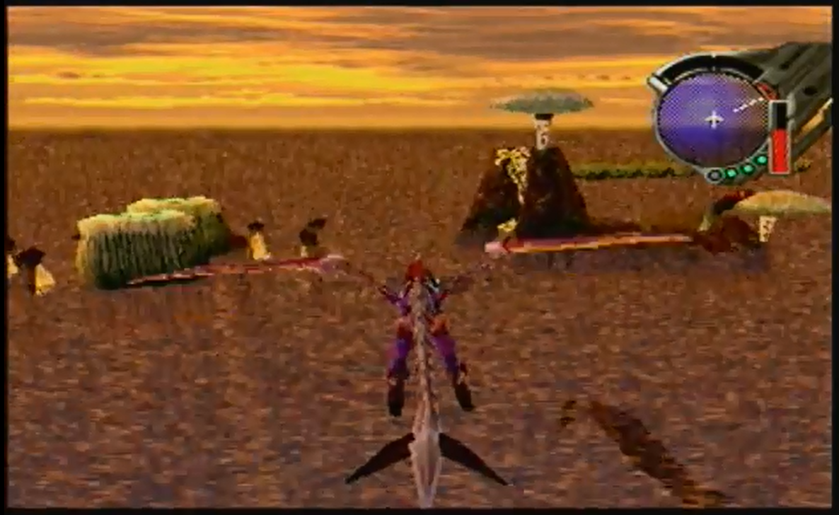 However, the bulk of the Panzer Dragoon Saga experience is had on the wings of Edge’s dragon. After leaving a settlement, Edge mounts his steed and takes to the skies, exploring some large (for its time) open environments.
