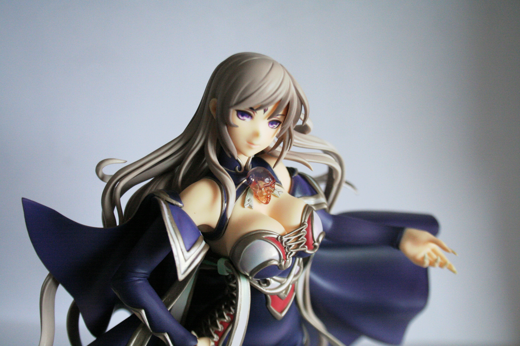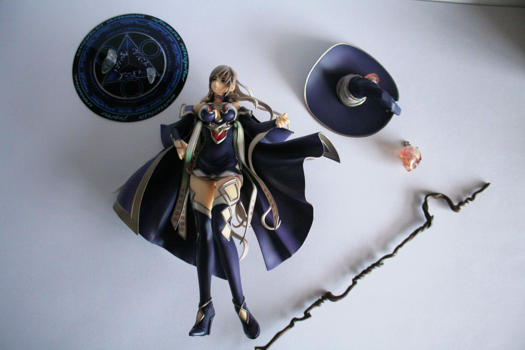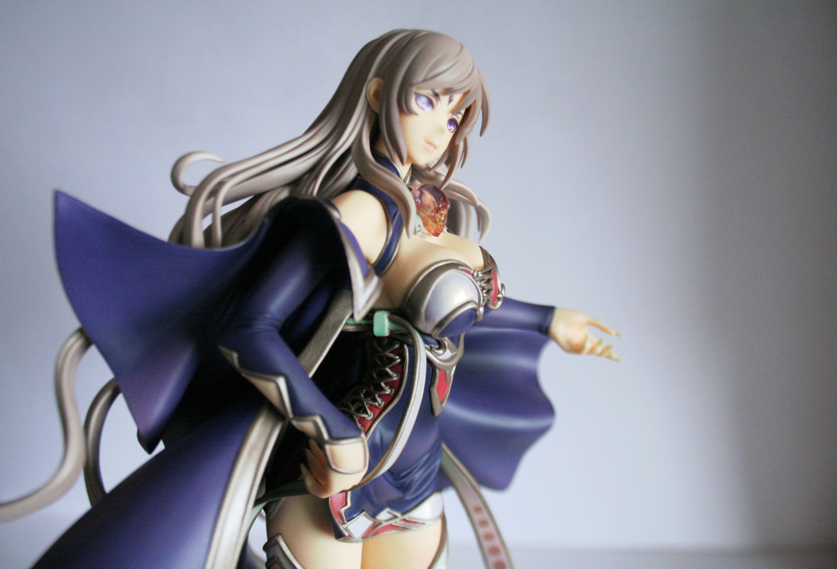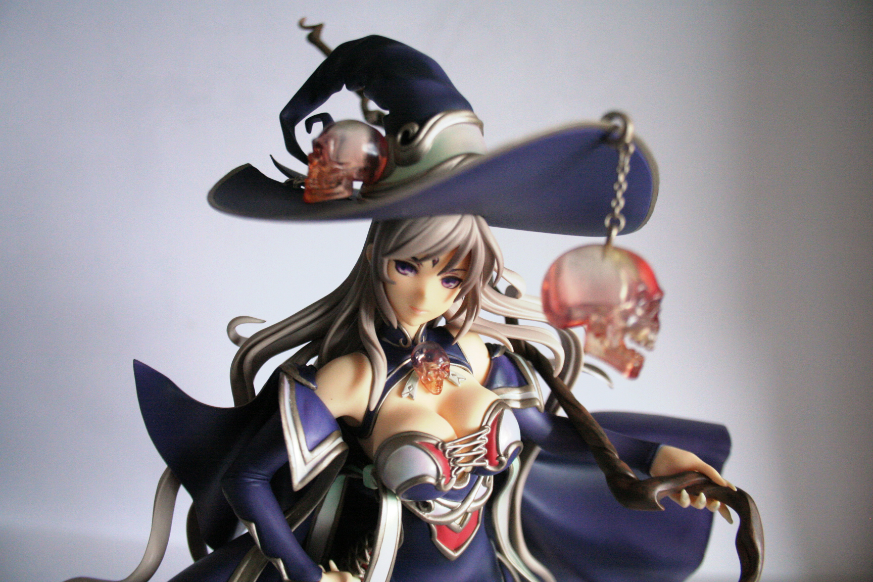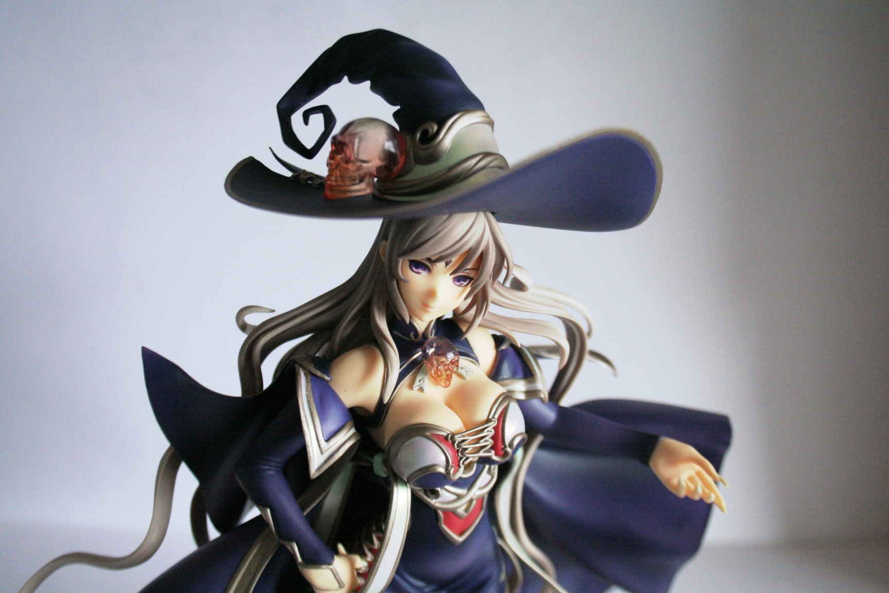 A cool thing is that her mage/witch hat has a magnet that reacts to another in her head! You can add the cool looking crystal skull with real chain to it. The figure has such great details like the mentioned jewelry which is also present on her chest as a collar. The figure is made of such soft PVC that it makes a figure as huge as this one light in weight and easy to stand up.