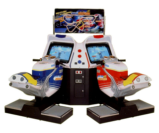 Coming into arcades, multiplayer was one of GP Rider’s key points, considering all the cabinets came in Twin format. There were no single cabinets, even on the uprights, so every machine begged for two players to go at it.