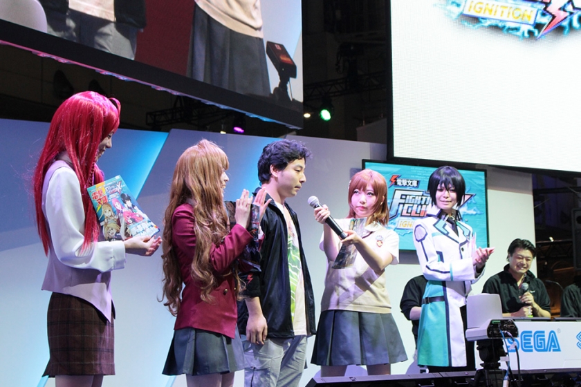 Dengeki Bunko Fighting Climax: Ignition stream was the eighth segment, they basically said the same as the 2nd day (you can take a more detailed read here), explaining the new Ignition System, then presenting the Fighting Cosplay Girls and the 2nd DFCI national champion player, they made some match challenges, so the champion won to be fed a brownie by the Misaka Cosplayer. The Stream segment closed with them announcing a Dengeki Bunko Fighting Climax: Ignition event!