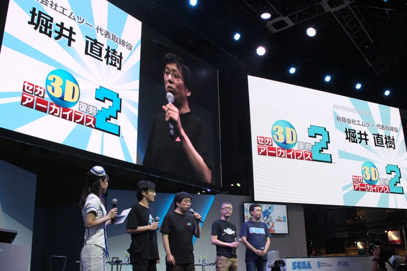 Today was the BIG day on the SEGA TGS 2015 Stream series, and man, what an epic Stream day it was! The stream jumped right into action with the SEGA 3D Classics talk, Issei Shimomura (lead producer) and legendary Yosuke Okunari (Series Producer) joined the stage first to introduce Naoki Horii from M2 (the studio developing the SEGA 3D Classics) and legendary guest illustrator Ken Sugimori from Game Freak (Pulseman, Pokemon, etc). The amazing talk began with Shimomura and Okunari talking about how the process to transport the Mega Drive titles to 3D and make a better use of the 3DS hardware. “I have been loving Sega titles (as an employee) for more than 20 years. And, as long as there is enthusiasm from everyone, we must continue that the SEGA spirit”, Shimomura said. Horii continued the talk by explaining M2 devleoped its own engine to fully achieve a real 3D feel to those games. They continued the talk with an explanation of their favorite games and some anecdotes on development, most of them had very fond memories for Fantasy Zone.