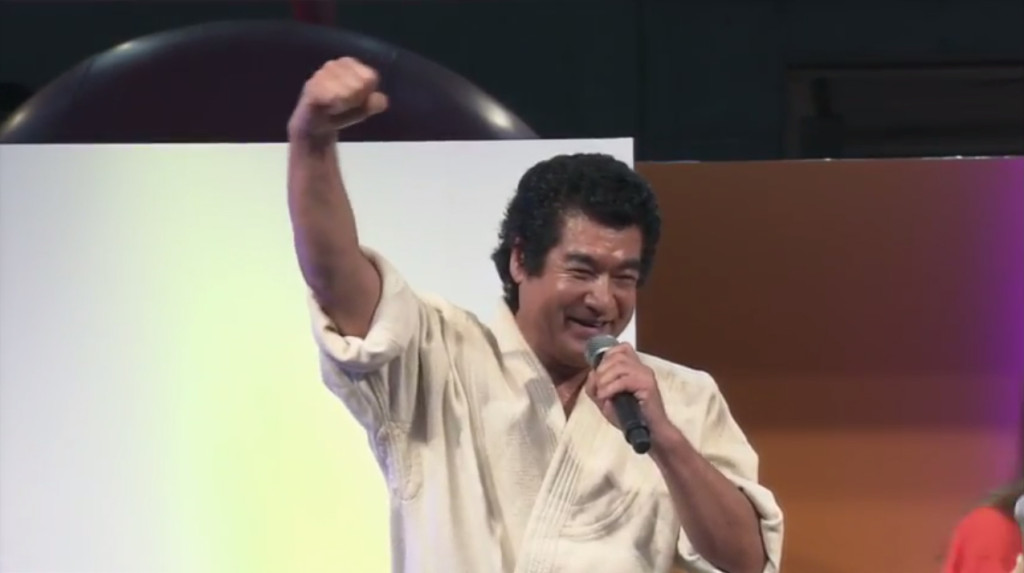 We had to miss the Lego Jurassic Park and Yakuza streams because… it was time for Segata Sanshiro on the Project x Zone 2 Stream at the Bandai Namco Stage! The show began with Kensuke Tsukanaka (Game Producer) and Soichiro Morizumi (Monolith Soft) introducing Tomokazu Sugita as Streets of Rage’s Axel Stone Voice Actor, he made quite a impression by starting to the character’s voice to introduce on stage the most awaited man on TGS 2015: Hiroshi Fujioka aka Segata Sanshiro, then the crowd went wild…