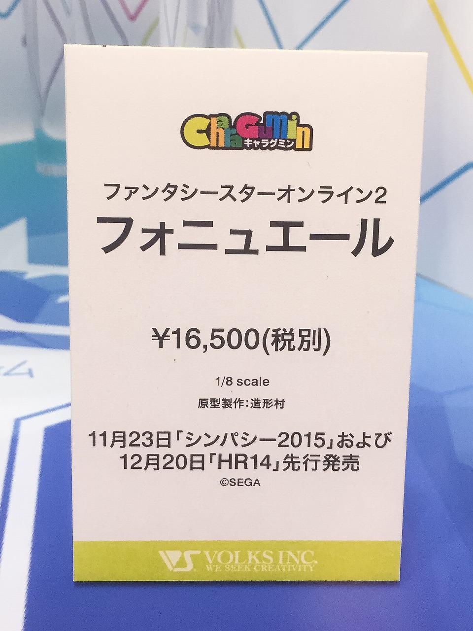 Japanese figure manufacturer, Volks Inc., has announced a PSO2 Fonewearl 1:8 scale Charagumin figure is on the way. The figure preorders will start on November 23 during the PSO 15th Anniversary concert celebration “sympathy 2015” and December 20th during the “Hobby Round 14” event. The price for this figure / model kit will be 16,500 yen.