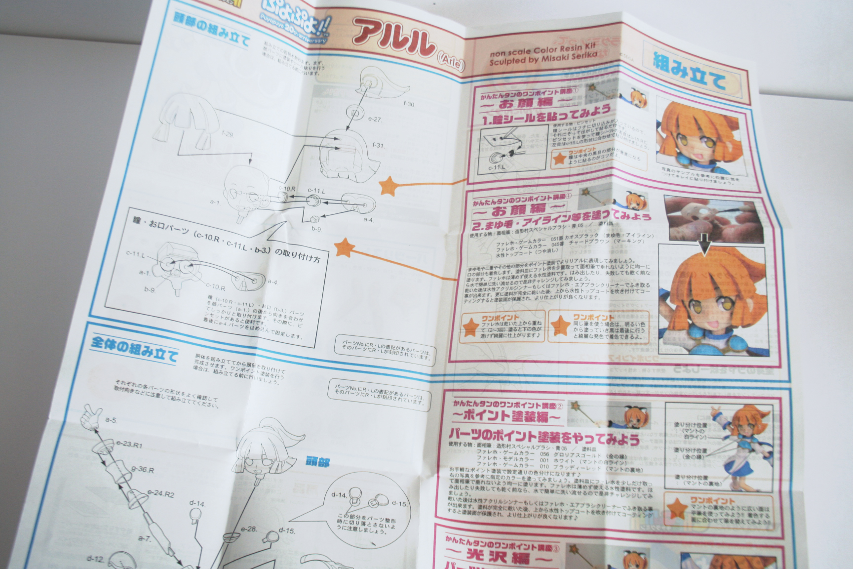 We start by looking at the package, which by no means is your ordinary plain cardboard box model kit, these transparent packages are pretty as they can be. Which gives you an idea on how much care is paid to the Volks Inc. models. Once you get the pieces out, you notice this is well done, and relatively easy to do if not for the few painting parts, but saves you the hard time of detailing eyes by providing stickers. Their instruction manual is pretty clear too, you won’t have to translate it, the pictures are pretty self explanatory. Of course, we won’t discuss the assembly process here, I made a full detailed tutorial over here, so you can get the idea on how to do it yourself. We’ll focus more on the detailed figure pictures here.