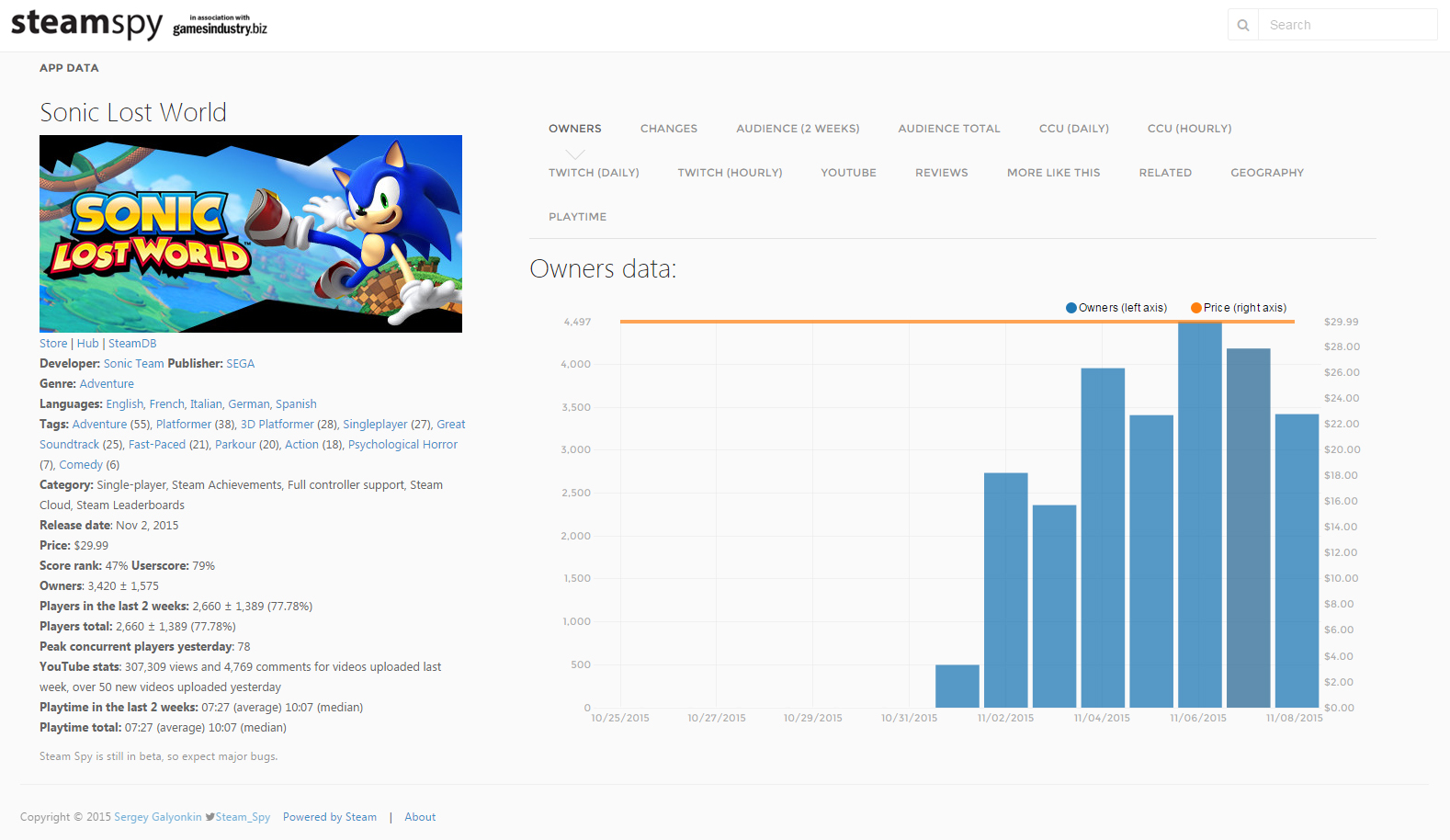 SteamSpy reveals a glimpse of how Sonic Lost World is doing on Steam