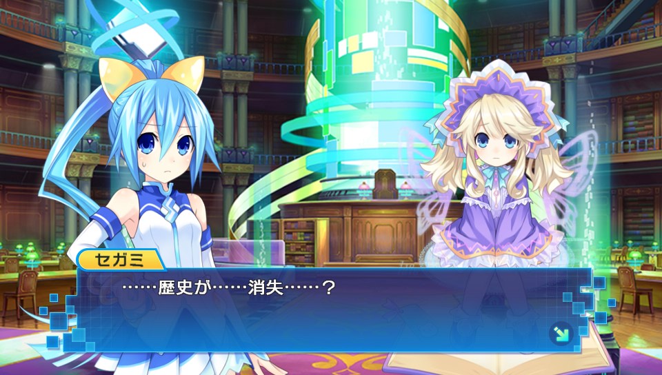 Japanese news site, 4Gamer, has posted new Neptunia vs SEGA Hard Girls information today. More details about the story, gameplay system and levels have been unveiled. As we already know the story revolves around If and an amnesiac new character named SEGAMI joining forces to restore the books of history across dimensions after being asked by library of time keeper to do so, the site now reveals the catastrophe has been caused by a “Perfect Chaos” type of creature. Both characters will have to restore the lost fragments of time across the different SEGA consoles eras, resulting in a conflict and team ups between Neptunia and SEGA Hard Girls characters. Neptune will be later introduced and her bike transformation will aid you to leap through dimensions.