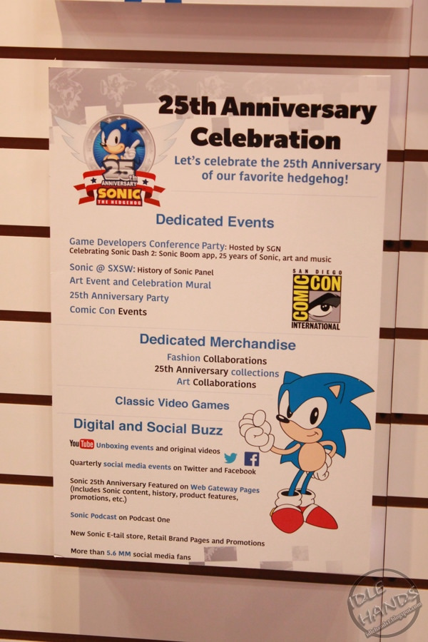 In other Sonic 25th anniversary news, SEGA plans to have a party at the Games Developers Conference, hosted by SGN, with art and music to celebrate Sonic’s 25th anniversary and Sonic Dash 2, according to a display found on the show floor at the New York Toy Fair.