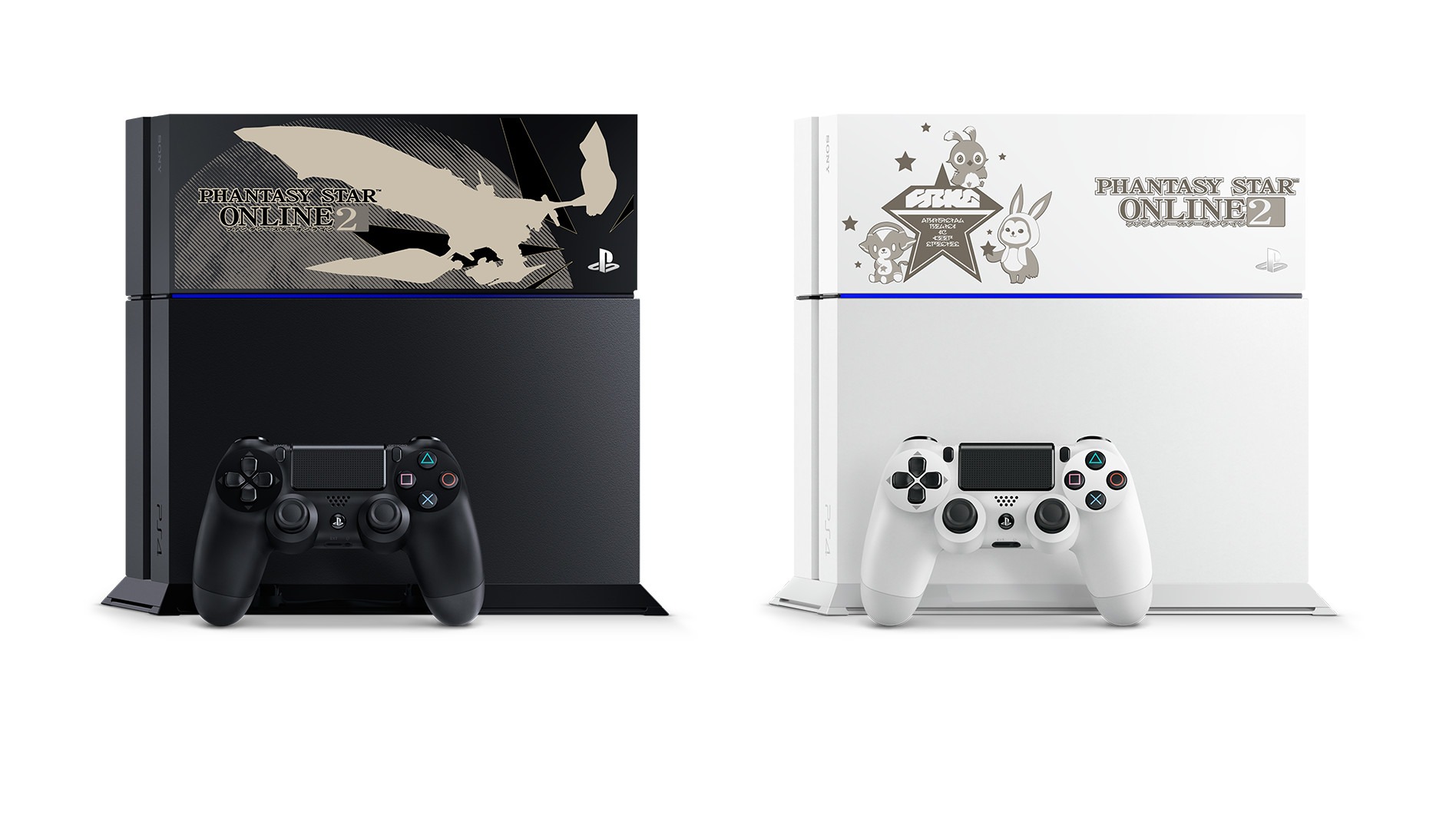 Sony Computer Entertainment Japan and SEGA Games Japan will release 3 special PSO2 episode 4 limited edition PS4 Consoles on April 20, 2016 in Japanese territory to celebrate the title’s launch. All consoles will include the game with a special cover box, a mono headset, the console’s cable, and 1 controller, however the difference between all 3 versions will be the console itself. The 1 TB version will only come in black with a PSO2 ARKS cover (for ¥ 42,480), while the 500GB version will come in black and white, the white version differs by having Rappy and Lilipan on the plate cover (for ¥ 37,480 each).