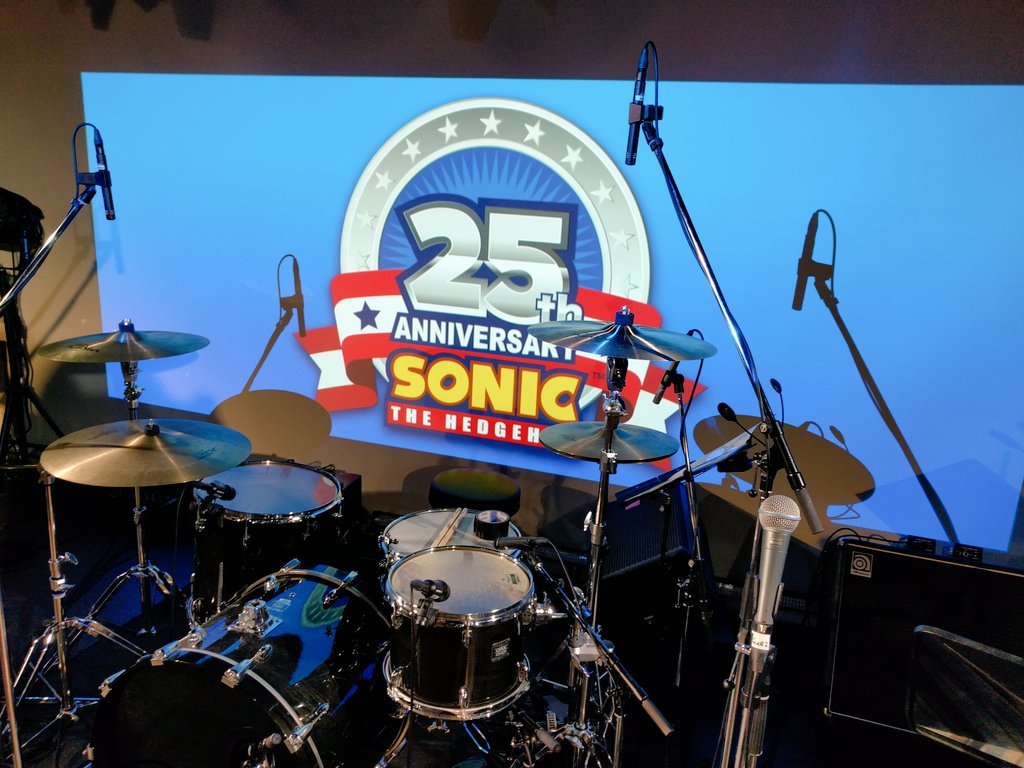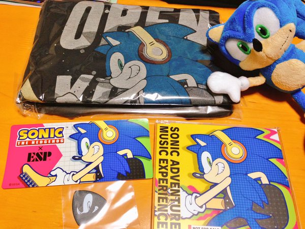 During the talk Sonic Adventure series concept art was displayed, Senoue and Ohtani discussed a little on how they had to composed tracks by just watching concept art in the beginning. The talk finished with Lin-san and Sato-san from ESP Japan joining Jun Senoue to talk about the Sonic Series guitars. There was no new game announcement, however attendees received 1 exclusive special limited edition CD plus an ESP sticker, there was also COSPA merch at the event. For the concert part, Jun Senoue was joined by Ken Taneda, drummer Act., and Tomoya Ohtani.