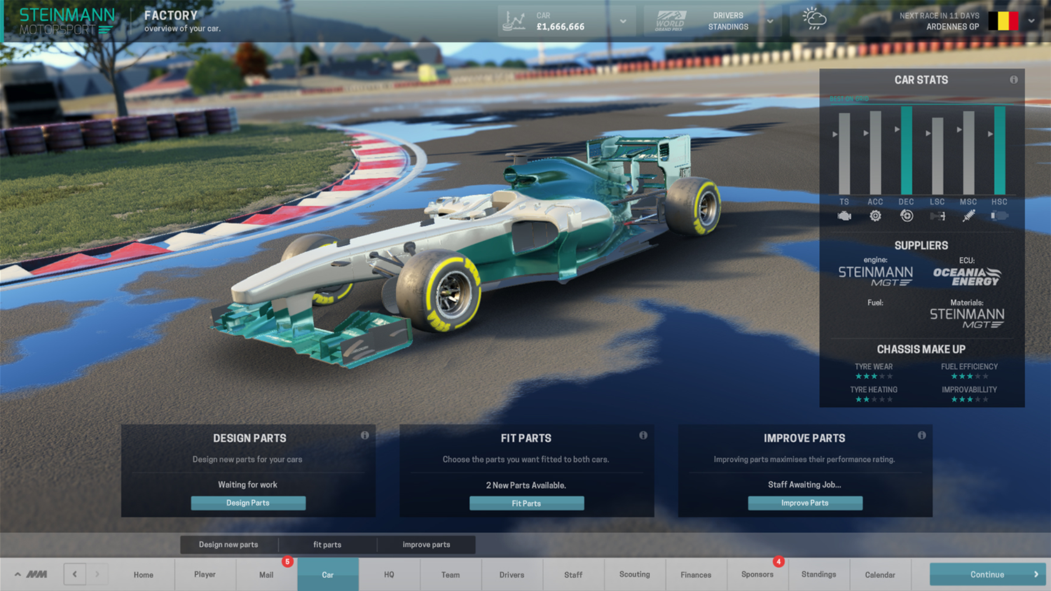 - Design and build your car from scratch during pre-season testing, with highly detailed design options that give you the freedom to produce components tailored to specific race conditions and then hone their stats in your factory for optimum performance.