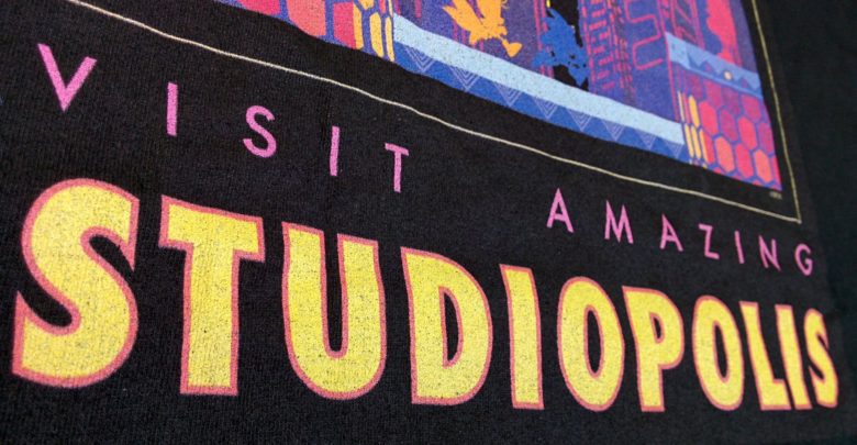 The second is my personal favorite and showcases a “touristy” poster-style image of promoting Studiopolis, with the words “See the Sights! Experience the Sounds!” above the image, with “Visit Amazing Studiopolis” below.