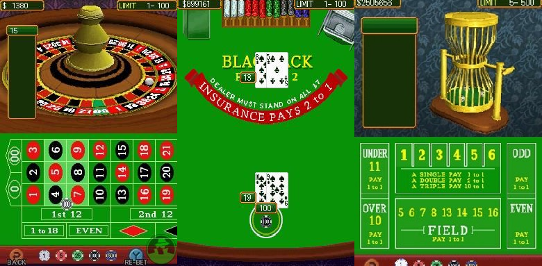 All games can be played in Free or Casino mode, while Poker can also be played in Multiplayer.