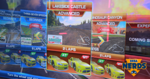 For each difficulty, you have one new track and one ‘Classic’ (remastered) track. For the remastered ‘Classic’ tracks we have Three-Seven Speedway (Easy track), Dinosaur Canyon (Advanced) and, I can only assume it’ll be Seaside Street Galaxy for the remastered Expert track – because it was the Expert track from the original Daytona USA.