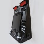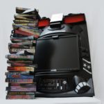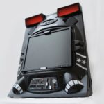 A 19″ LCD screen is fit right into the center of the console, and a 5 Watt dual stereo by Logitech is housed right above it. This beast of a machine supports the entire Genesis/Mega Drive and Master System library and you and a friend can play all the two player games you want thanks to the built in controller ports.