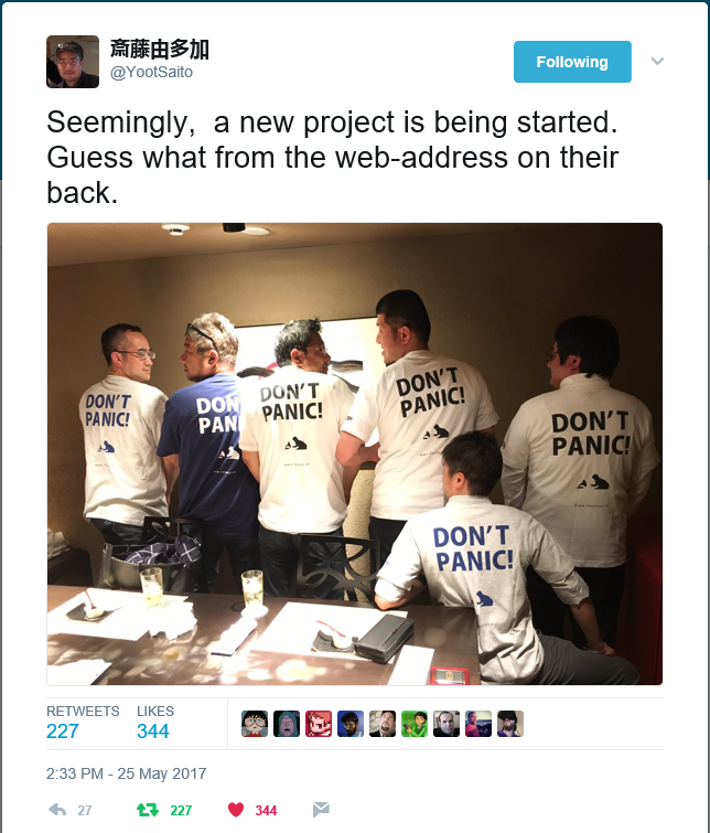 The game’s original designer, Yoot Saito tweeted out an image today, showing a team of developers all bearing the legend “Don’t Panic!” – other than a reference to Hitchhiker’s Guide to the Galaxy, this was also the messaging used with the original game.