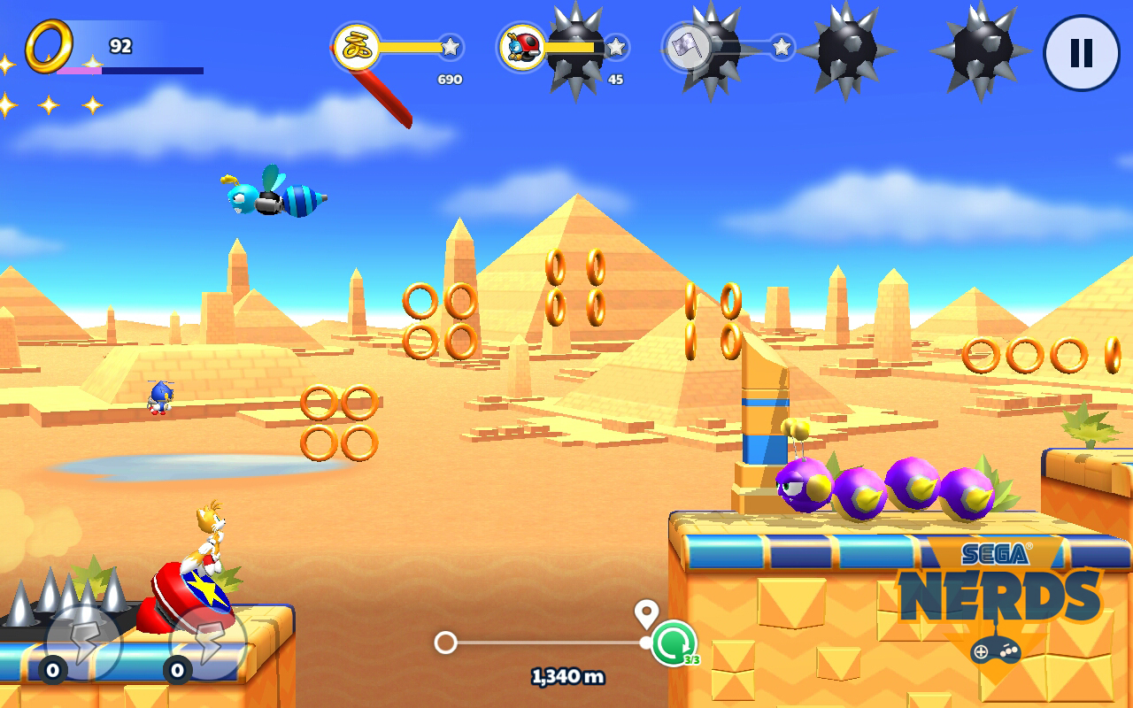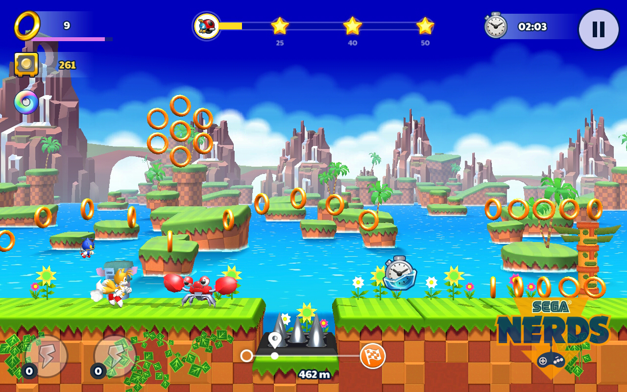 As mentioned, rather than running endlessly, you now have levels, each with their own goals (i.e. pickup X number of rings or kill X number of badniks) – you receive up to three stars per level, depending on how well you do with your goals. To me this feels much more satisfying than just trying to ‘get as far as you can’ in a typical runner game.