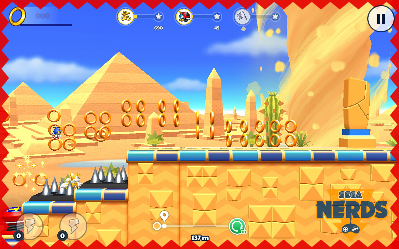 At the time of writing, I have only progressed far enough to unlock Tails and the second zone, Desert Ruins.