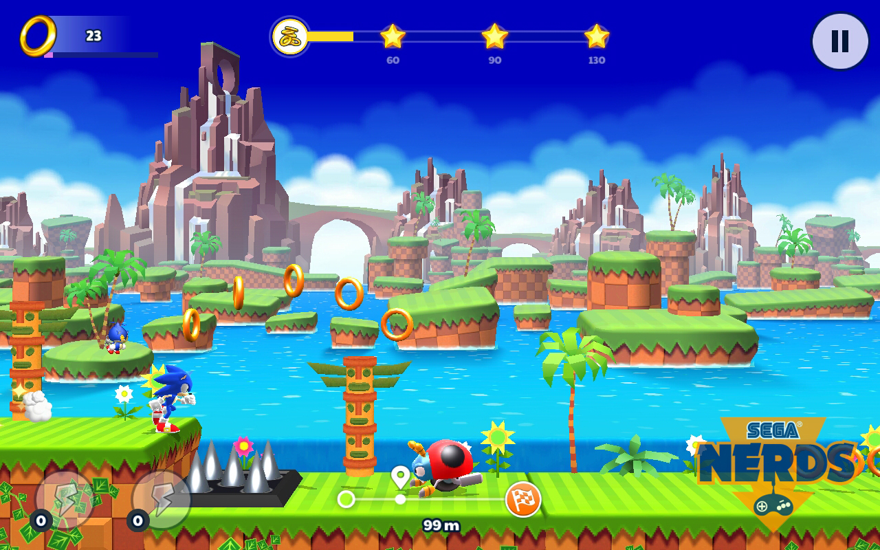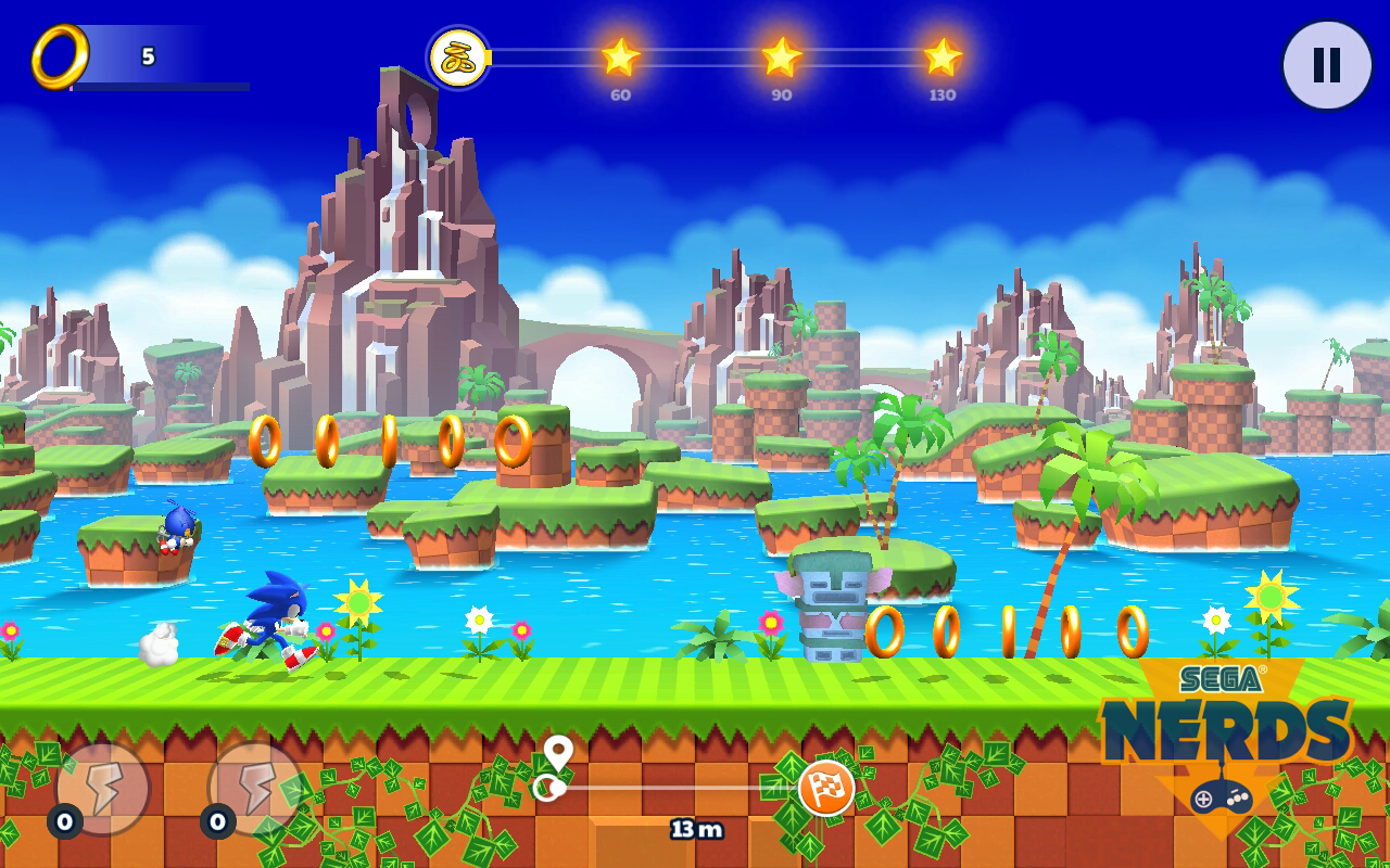 Like the original Sonic Runners and Super Mario Run, Sonic runs along automatically and it’s up to the player to tap the screen at the right moments to avoid obstacles, kill enemies, collect rings and reach their goals.