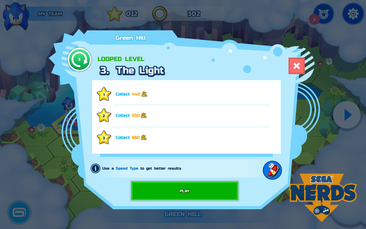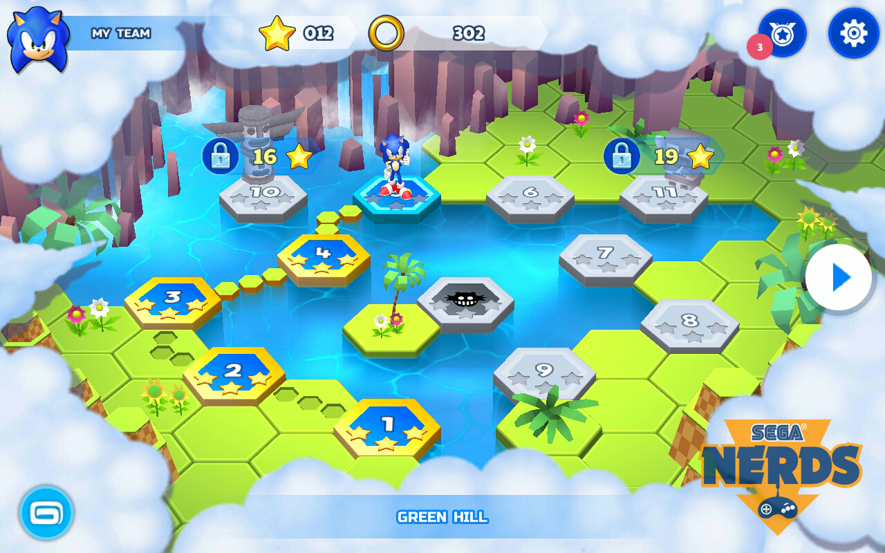 As you progress, you see Sonic make his way across a map of hexagons and you are free to return to earlier levels to try and beat your previous score, or earn more stars – which go to help unlock new zones.