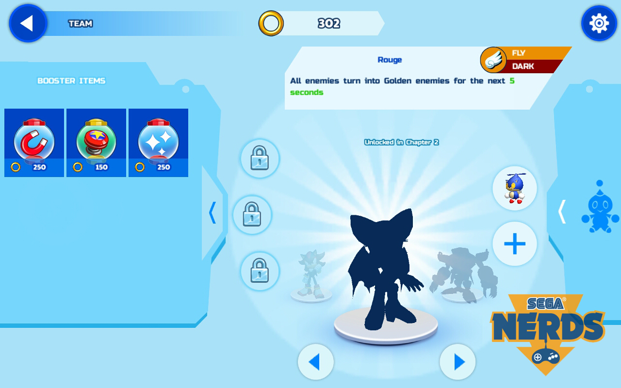 So far, I haven’t earned enough rings to buy Team Chaotix or Team Dark, but I can assume they all play very similar to the Team Hero counterparts.