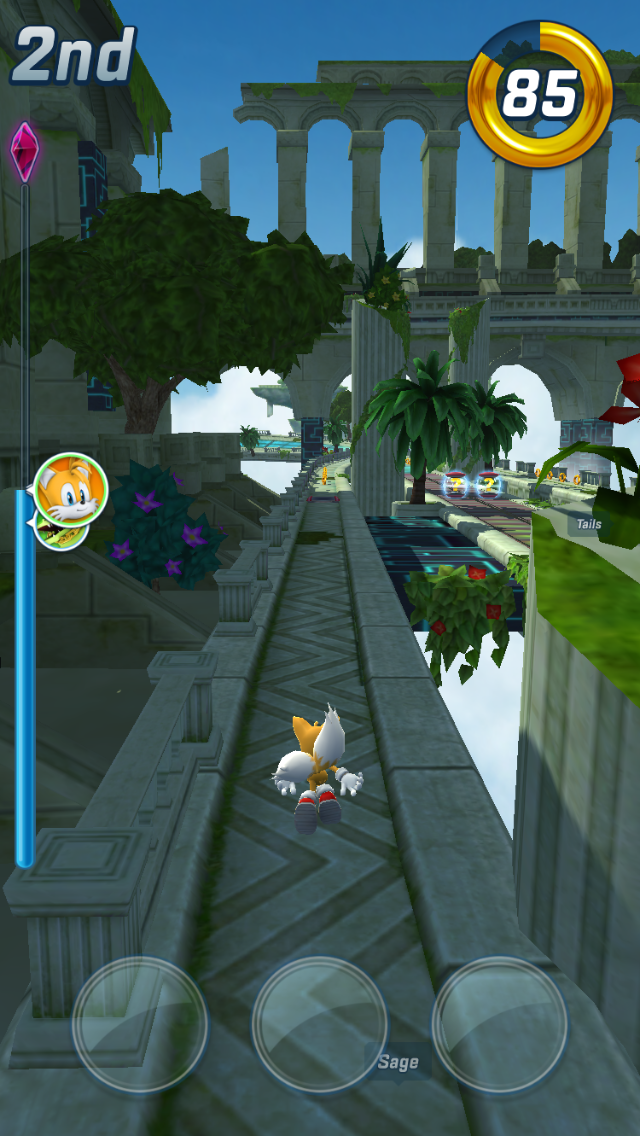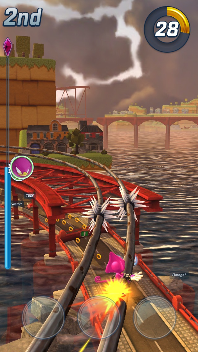 Speed Battle’s biggest change is it’s not an endless runner. Instead, you are put in a race against your standard fare of Sonic characters, racing throughout a variety of levels from Sonic Forces, where you try to reach the goal to earn points and rank up the leaderboards.