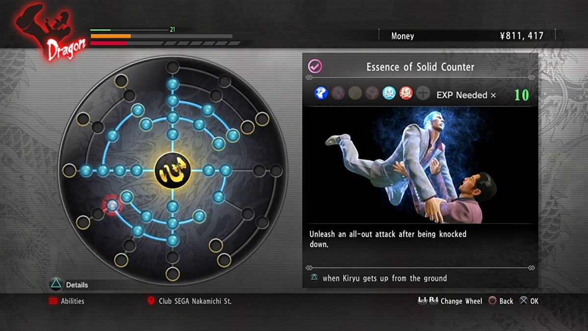 Oh, and on the note of leveling up: Since making fat stacks of cash was more of an 80’s theme in the original, it doesn’t play into “buying” moves and levels as it did in Yakuza 0, and enemies don’t have cash flying when beaten. Instead, leveling up is done in an altogether more traditional fashion. It’s understandable, but slightly disappointing after the thrill of mad money flying everywhere.