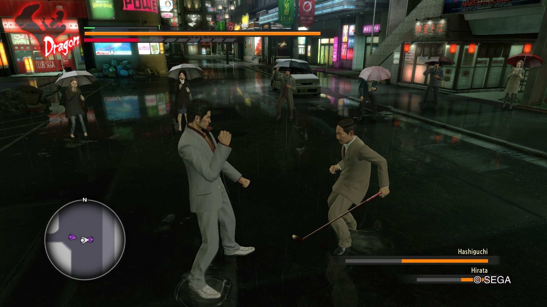 Speaking of difficulty, another new feature in Yakuza Kiwami is the “Majima Everywhere.” Early on in the game, you meet up with Yakuza 0’s other playable character, Goro Majima, and he pretty much wipes the floor with you, setting up the idea of him attacking you at random to help restore the Dragon of Dojima to his former glory. I was worried that these battles would prove cumbersome to deal with, but relieved to find out that would not be the case.