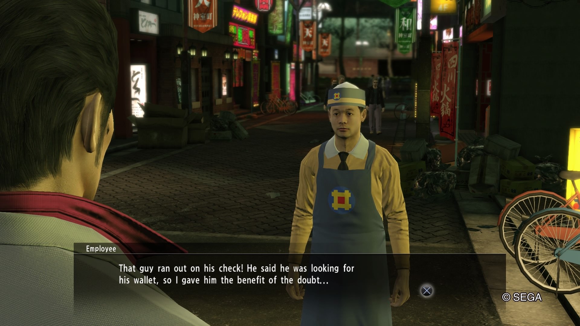 Incidentally, another carryover from Yakuza 0 is that when you come across someone being victimized, it seems the goons and Kazuma’s dialogue is lifted straight from that game.