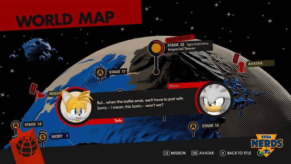 From the trailers and box art you should also know that you can also play as Classic Sonic. In terms of story, Classic Sonic’s appearance makes little sense – it’s just said that because of Infinite’s powers, the dimensional fabric has been torn and Classic Sonic appears… although no other dimensional trickery really occurs, there’s no second Eggman or Tails from previous titles, just Sonic.