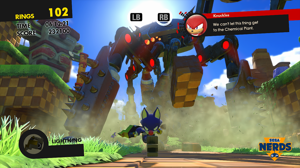 The added issue I had with Sonic Forces’ story is that it’s filled with practically every Sonic character we’ve seen over the years, yet they seem to do little more than talk to you over the radio during levels and have their faces appear next to text boxes, moving the story forward when in the world map view. The likes of Knuckles and Silver, who have proven their worth as competent fighters in previous games are now relegated to benchwarmers, while the Rookie steps up and basically saves the day.