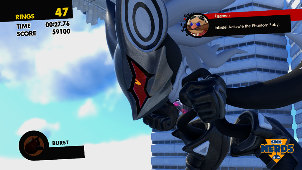 It’s a weirdly bleak affair which could have worked, if it wasn’t for the juxtaposition from the rest of the Sonic cast; where we have super cute characters like Charmy Bee talking about fighting in a war, and brief scenes where Infinite appears to kill equally endearing anthropomorphic creatures trying to fight back. It’s not that I’m against gritty storylines in games, but it just doesn’t work properly with the source material here.