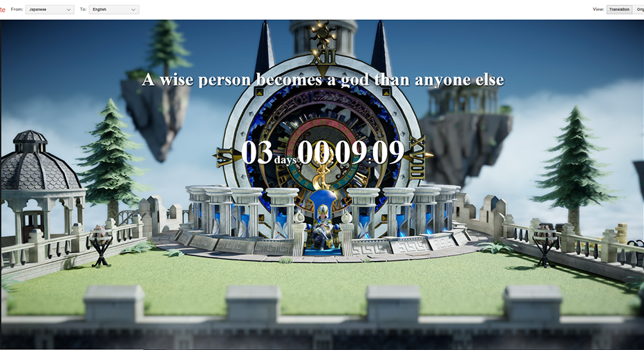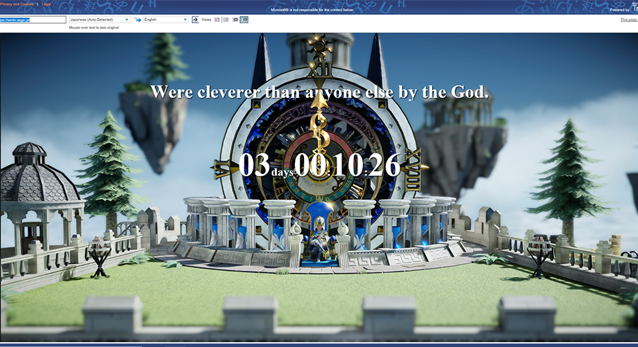 The teaser site shows some sort of floating isle, with a time/clock motif going on. In the centre is a huge clock face, counting down to the launch of the site, with a digital countdown on display.