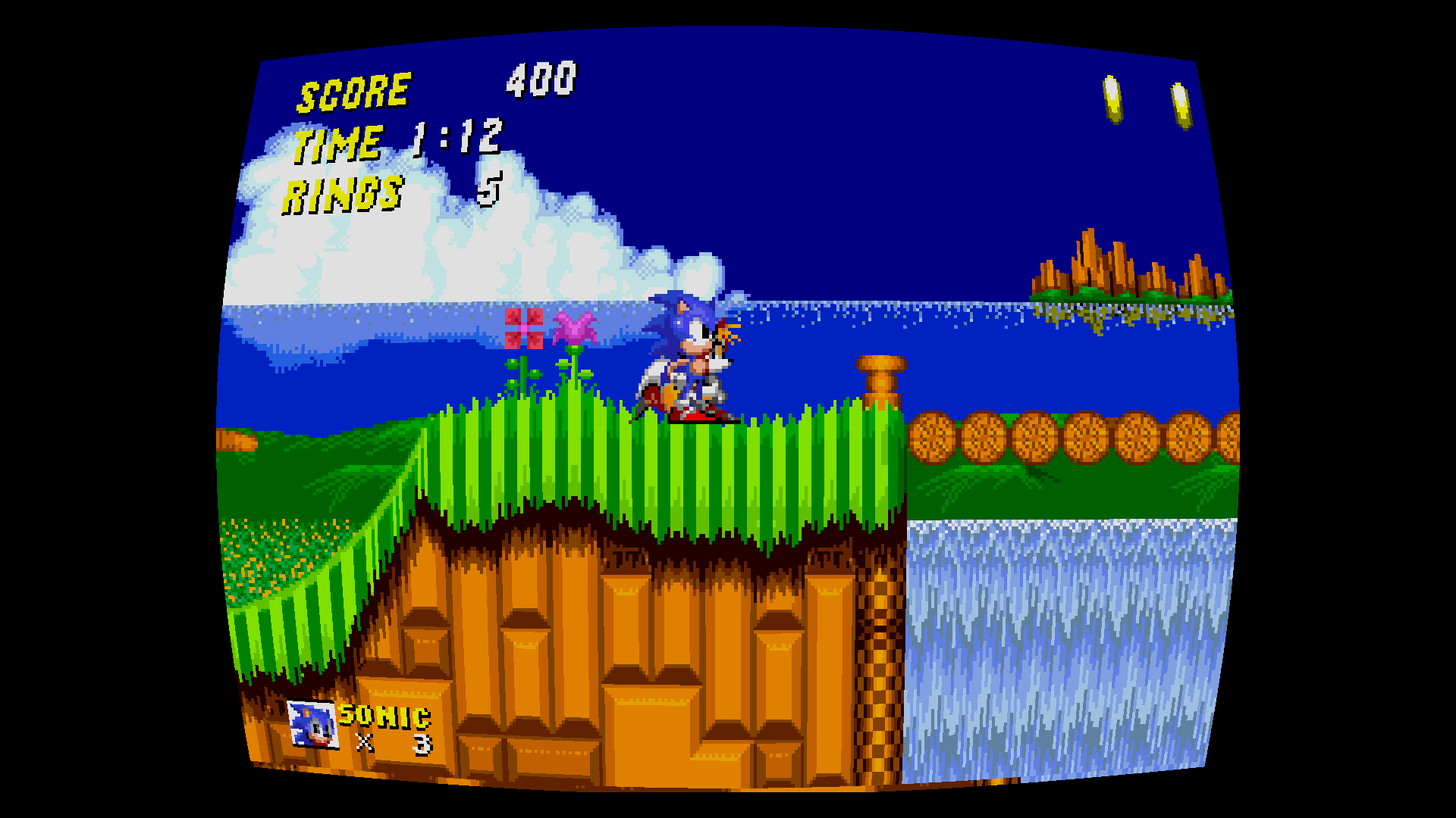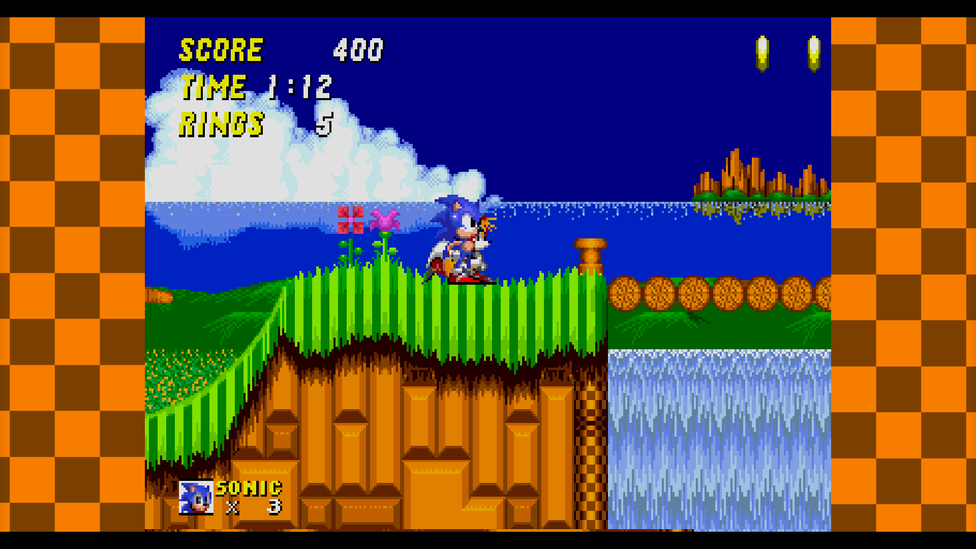 Choosing a game to play involves navigating a shelf full of spine on Mega Drive cases, just like real life in days of yore. It’s cute, but feels a little sluggish. Thank goodness there’s a favourites feature, allowing titles of your choice to be moved to the very start of the list. Various game-specific challenges can also be accessed from here, and where applicable, it’s possible to immediately skip to the correct part of the appropriate game to attempt them. While a nice idea, this is only likely to be of use to hardcore trophy or achievement hunters. The aforementioned flip mode is similarly throwaway, with few practical applications outside of novelty speedrunning and streaming.
