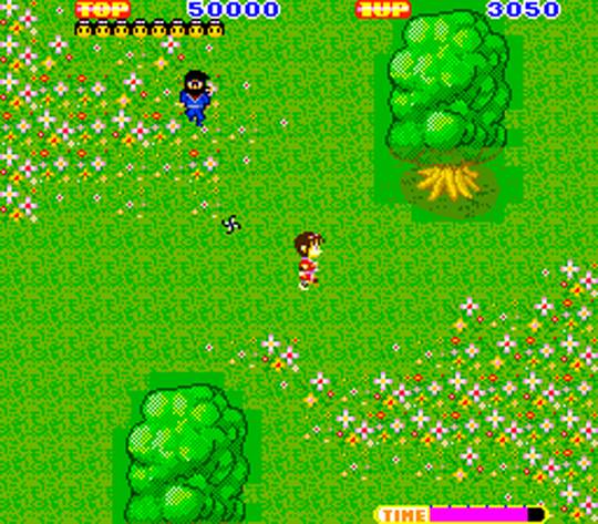 Originally released under the title “Ninja Princess” in Japan and later retitled and gender swapped as Sega Ninja / The Ninja for its English version, this 1985 Sega title was released in arcades and Sega Master System as part of a martial art trilogy, along with Black Belt and Kung Fu Kid.